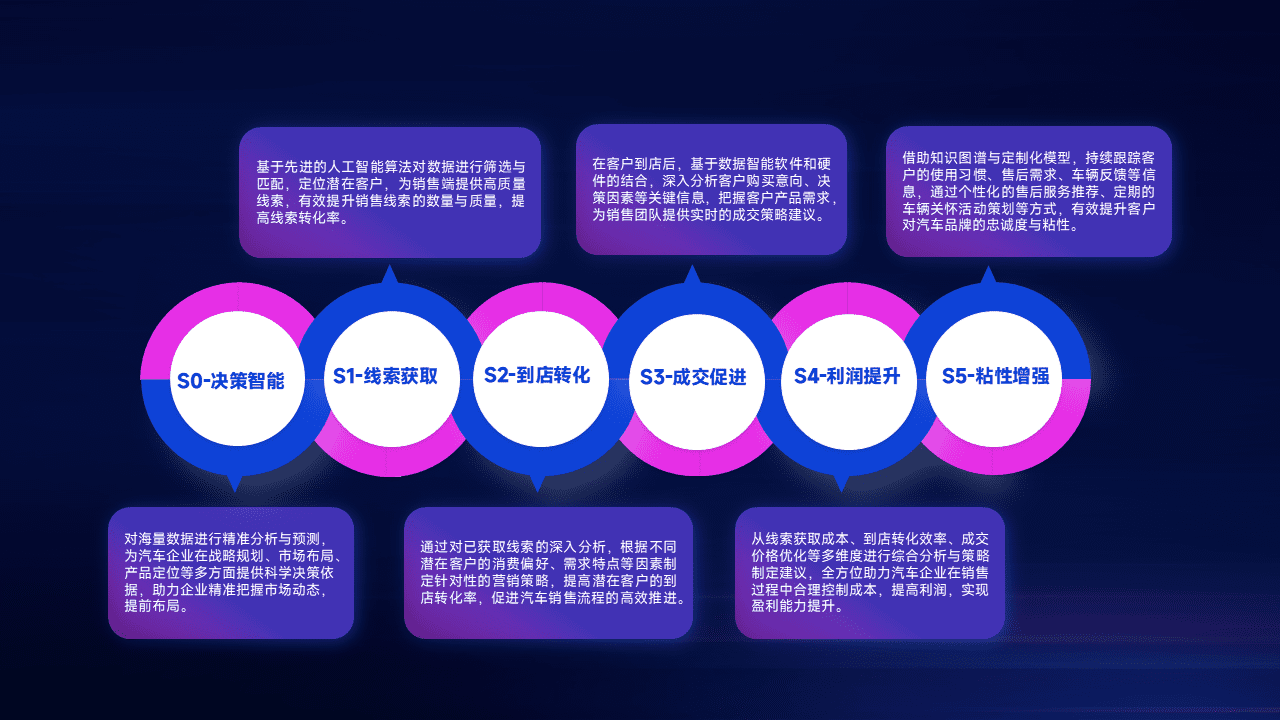 通过拓宽潜在客户来源、、优化线索分配并提高到店转化率,,,,以增强销售效率。。。。同时,,,,利用线索数据不断优化分析模型,,有效提升转化率,,扩大营销影响力。。。。